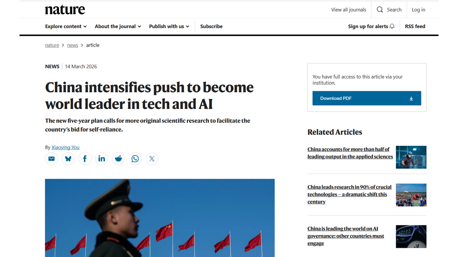 《自然》杂志:中国加速推进科技与人工智能强国建设(英国)