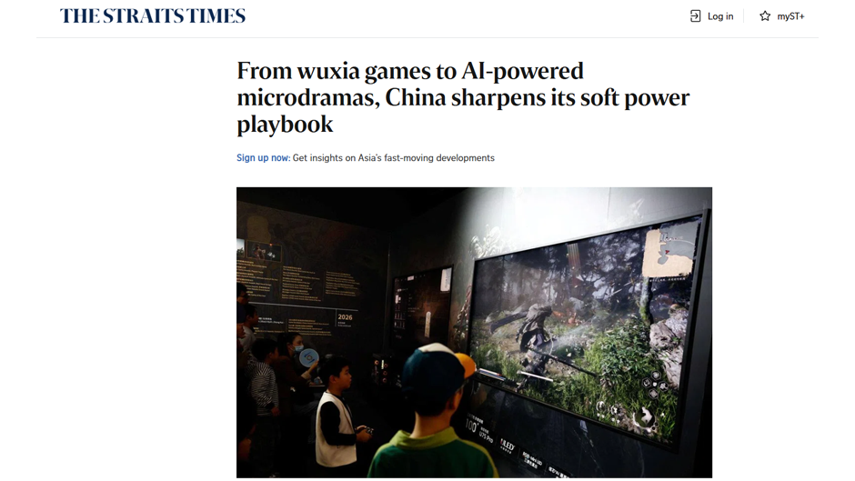 《海峡时报》:从武侠游戏到AI微短剧,中国软实力策略的升级(新加坡)