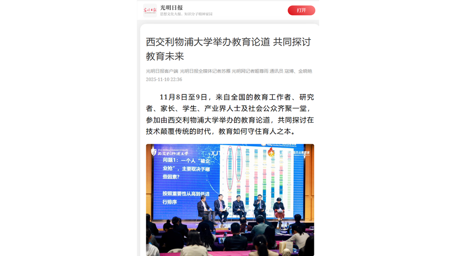 《光明日报》:西交利物浦大学举办教育论道 共同探讨教育未来