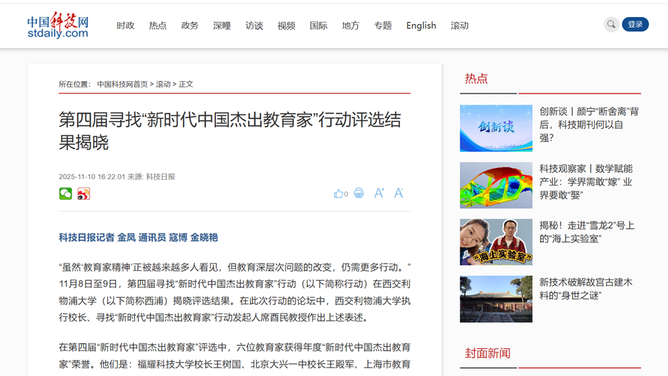 《科技日报》:第四届寻找“新时代中国杰出教育家”行动评选结果揭晓