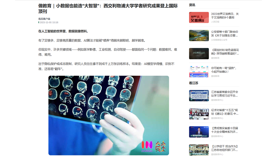 江苏广播电视总台我苏网:做教育 | 小数据也能造“大智慧” 西交利物浦大学学者研究成果登上国际顶刊