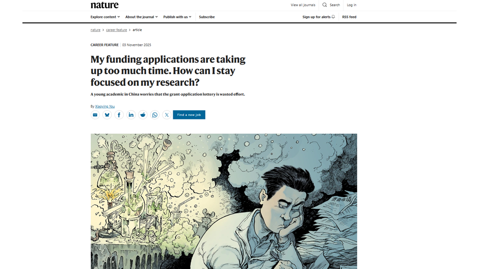导读:据英国《自然》杂志11月3日报道,一位中国青年学者因写基金申请占用太多科研时间,向他们求助,包括西交利物浦大学童心昭博士在内的学者分享了经验。童博士称,自己也曾面临同样压力,最终通过专注于研究本身、看淡申请结果,才得以“解脱”。