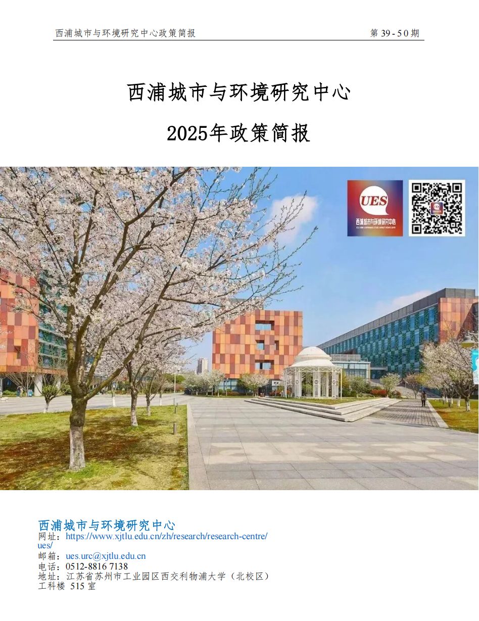 西浦城市与环境研究中心于每月定期发布《政策简报》系列推文,及时更新城市发展中多领域的最新政策动态,帮助城市实践者和研究者发掘潜在的研究领域及合作发展机会。